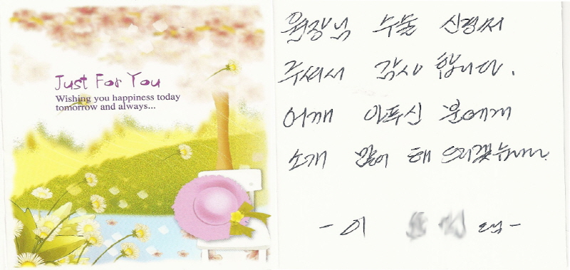 환자분이 보내신 손편지 페이지 정보 작성자굳센병원 댓글0건 조회11,838회 작성일16.11.20 12:46 본문 환자분이 보내신 손편지 이전글포항선린병원 제갈믿음 선생님 어깨수술 참관 다음글대구수성구 보건소와 저소득층 어깨무료수술사업 협약체결