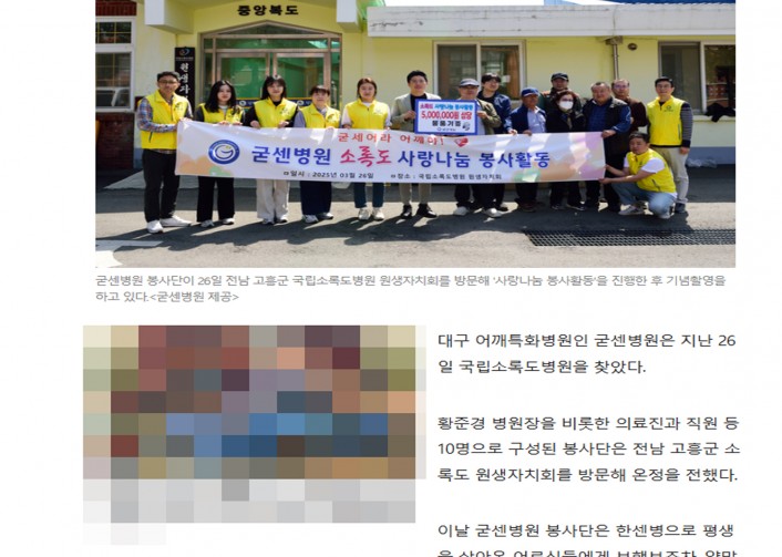 굳센병원, 소록도에 따뜻한 발걸음을 내딛다 [영남일보]