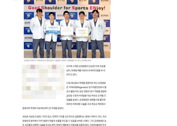 굳센병원, 대구경북 최초 '리제네텐'도입..회전근개 치료 새 이정표 [영남일보]
