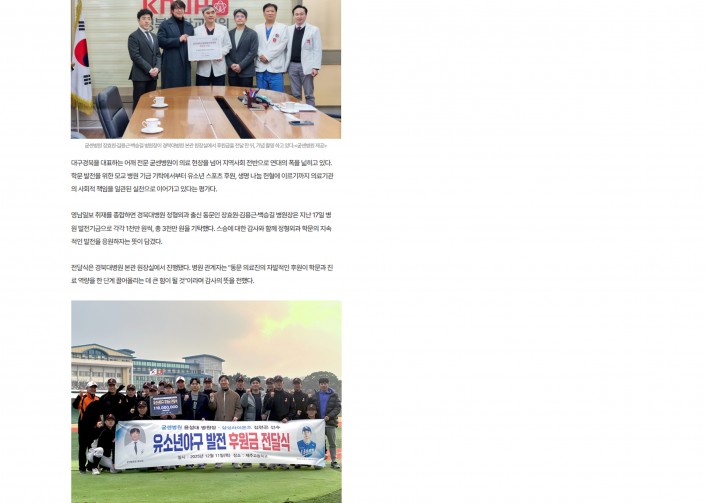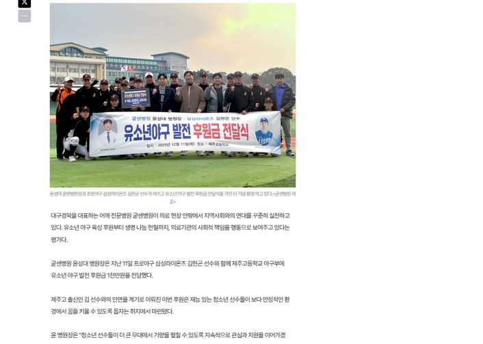 수술실 밖에서도 '어깨'내민 굳센병원,유소년 야구 육성'생명 나눔 실천 [영남일보][한라일보]