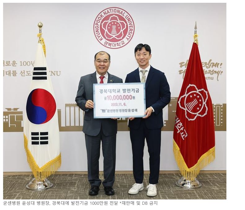 굳센병원 윤성대 병원장,경북대에 발전기금 1000만원 전달[뉴시스][교수신문] 페이지 정보 작성자굳센병원 댓글0건 조회529회 작성일23.11.08 15:20 관련링크 https://www.newsis.com/view/?id=NISX20231106_0002511112&cID=10810&pID=… 278회 연결 http://www.kyosu.net/news/articleView.html?idxno=111677 278회 연결 본문 이전글어깨 중점병원인 굳센병원,단체 헌혈행사 통해 나눔 사랑 실천[영남일보] 다음글굳센병원,'회전근개 파열'자연관절 살리는데 중점[영남일보]
