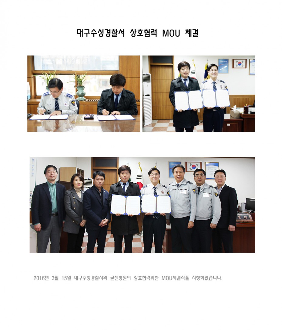 대구수성경찰서 상호협력 MOU 체결 페이지 정보 작성자굳센병원 댓글0건 조회13,373회 작성일16.11.21 10:02 본문 대구수성경찰서 상호협력 MOU 체결 이전글삼성라이온즈파크 개장식 의료지원 다음글2016년 대구 국제마라톤대회 지정병원 선정